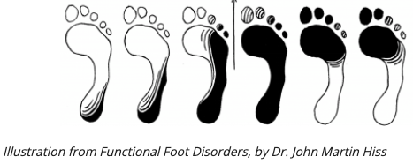 A little anatomical comparison: when the spine is it’s ‘locked in’ configuration, the upward force from the ground travels smoothly from the pelvis to the torso and head. When the medial arch of the foot is ‘locked in,’ the foot also cleanly transmits forces from the ground up to the pelvis. When the spine is it’s flexible configuration, the upper body can twist, swoop, dive, arch, reach, etc. - strictly human moves. The relaxed, soft foot easily adjusts to the terrain below, enabling the uniquely human biped stance.