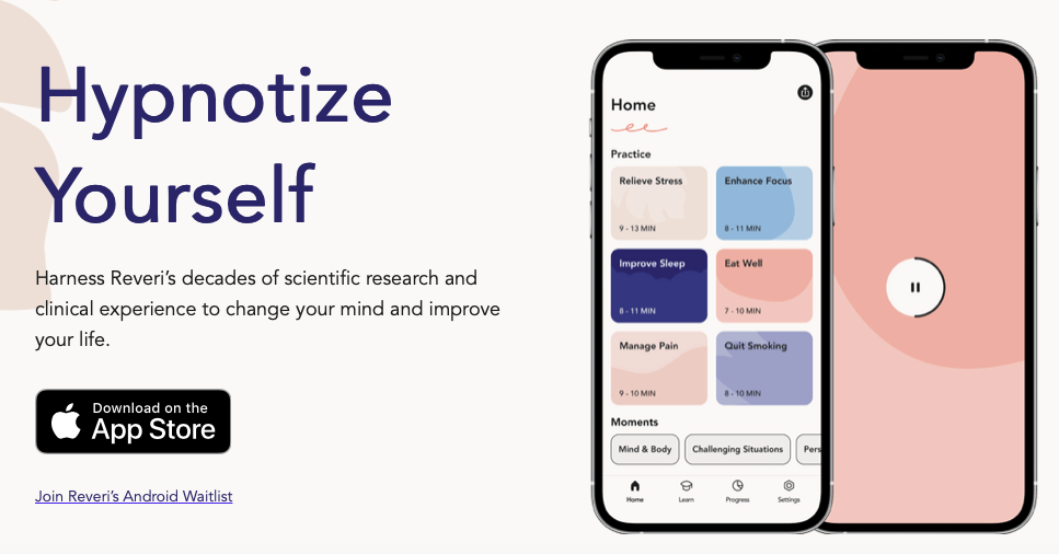 Dr. Spiegel tried to get the medical establishment to recognize the benefits of hypnosis in surgical, therapeutic and grief counseling contexts. The medical hierarchy, including the pharmaceutical companies, blocked him. He has created this app, Reveri.com, to bring self-hypnosis skills to everyone. 7 day free trial. then $15/mo. Could be a game changer for people with chronic pain, trauma, in cancer treatment, and other clinical conditions.