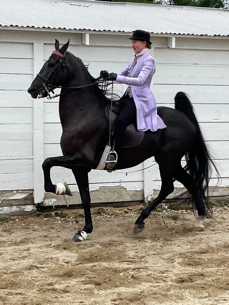 A beautiful young rider from Matthew Roy Stables heads into the ring. She and her mount are ready to compete.